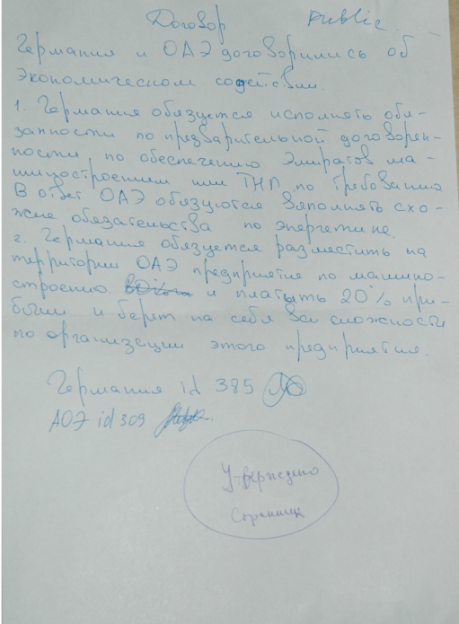 2. Германия обязуется разместить на территории ОАЭ предприятие по