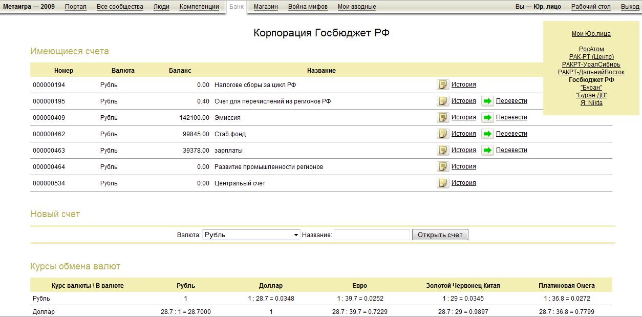 Чиновники 27 пятницаМодуль чиновкини программа: Оглашение итогов проблемных решений цикла 1-2 Совместное заседание госдумы и правительства РФ (членам думы из крупного бизнеса быть, и управляющим госккорпораций тоже). Отчет за цикл 1-2 губернаторов регионов. Отчет по освоению бюджета РФ. Принятие стратегических решений по развитию (эмиссия) Решение по "мертвым" корпорациям - ЦветМет-УралСибирь, ОСК-Центр, Газпром центр - назначение новых управляющих. Принятие должностей. Оглашение новых проблем цикла 2-3 Быть - губернаторам, федералам, управляющим госкорпораций и представителям крупного частного бизнеса. добавляйте свое!