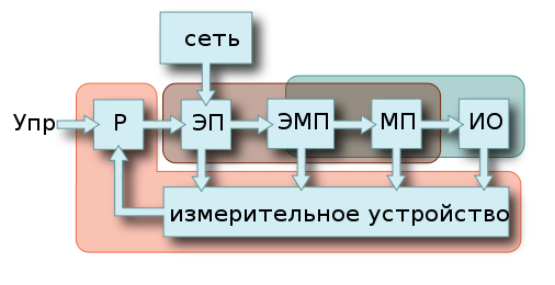 - Электромеханический преобразователь (ЭМП) — двигатель, предназначен для преобразования электрической энергии в механическую.